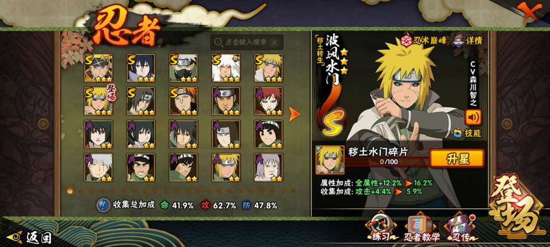 装备描述:青水 忍战小李 青春凯 妖怪纲手 绯流琥 秽土迪达拉 长十郎 桃博 我爱罗 迈特凯 泉奈