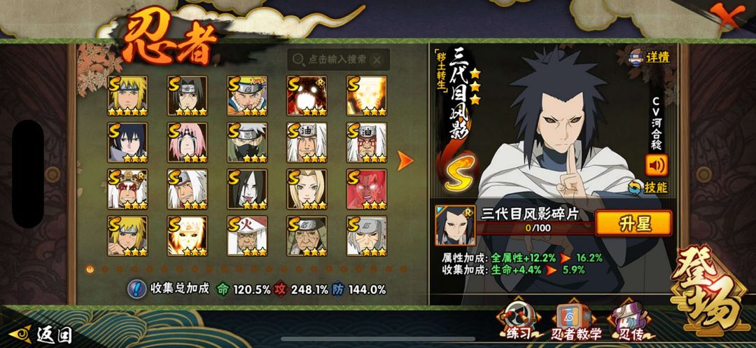 装备描述:42S 59A 熊猫螃蟹鵺 三代风影 小胡子 超哥 黑绝 漂带 漂泊小南 漂泊佩恩 五影带土 破