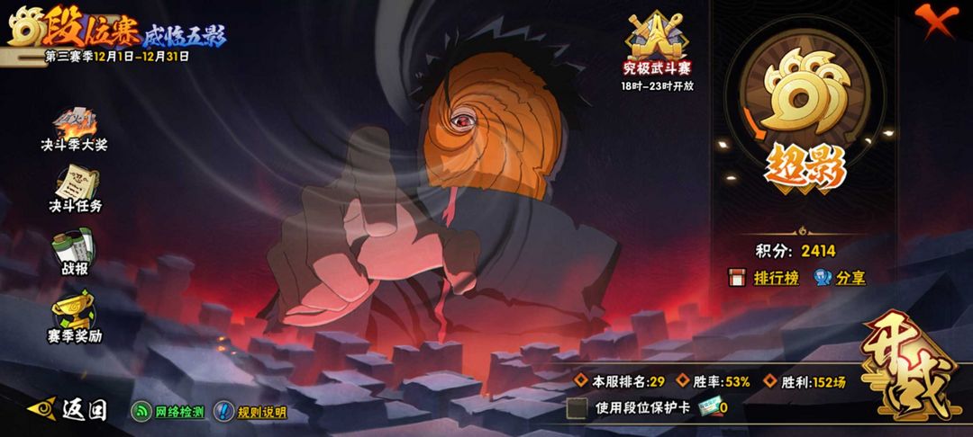 超影段位可打排位,传说自来已秒忍战卡卡西已秒须佐止水也秒了冠名忍者雷影已秒快来感受一下蓝色闪电⚡