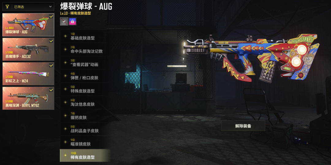 ⑩级爆裂AUG✅(异色)麒麟M762✅彩虹M24✅恶魔ACE✅白战神黑鬼✅烟枪烟弹