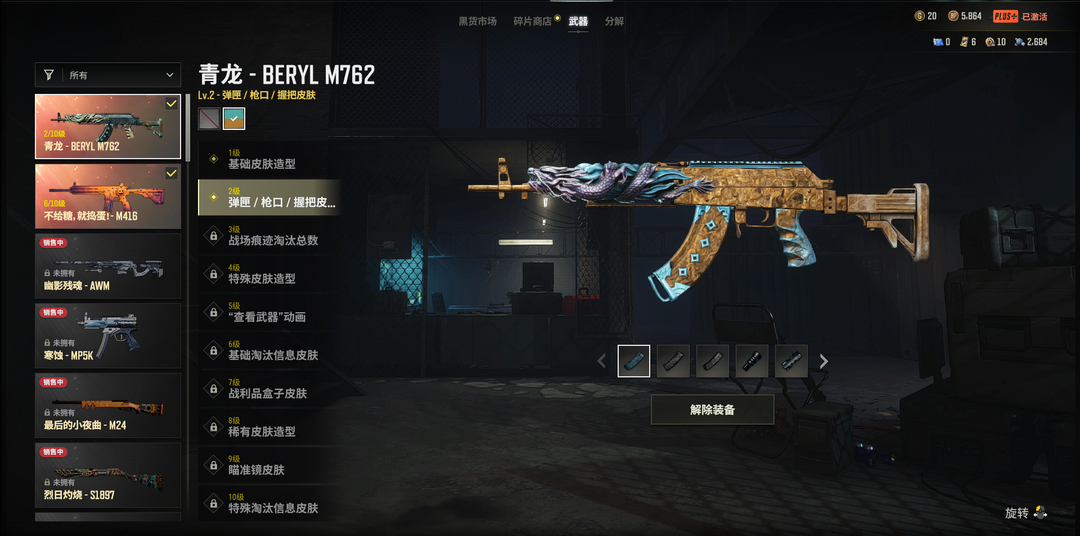 装备描述:二级密码681736满级号六级南瓜M4二级金龙762双马尾哈利套装绷带AK黄金面具美杜莎套装
