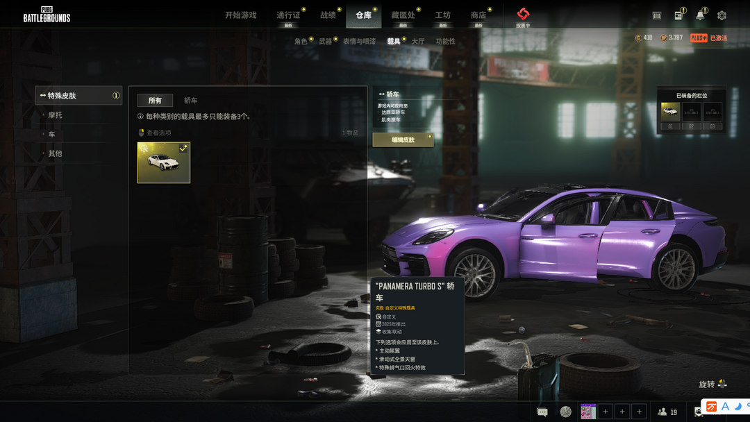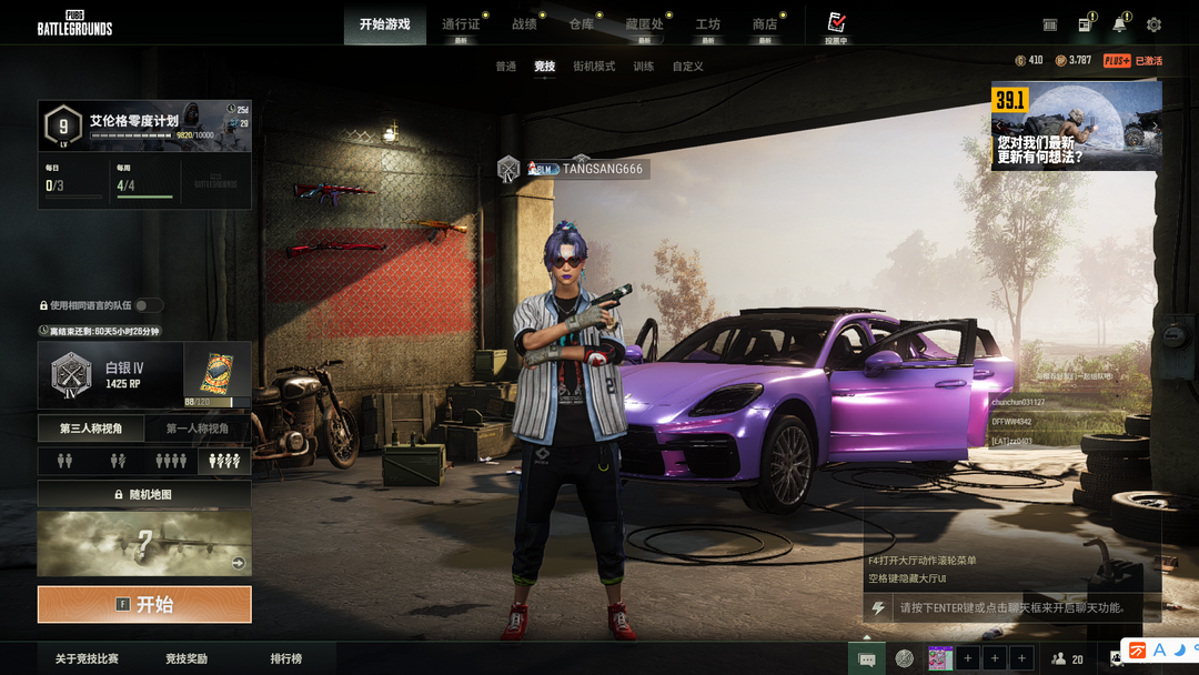 可排位二级密码667788✅5段保时捷帕拉梅拉珠光紫跑车✅成长型无信号M416午夜惊魂98K卡崔娜