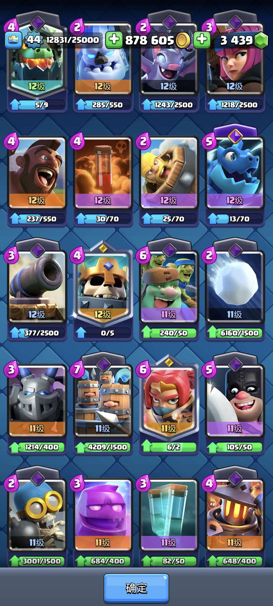 44级账号,14级国王塔 多个觉醒,多个高等级卡组