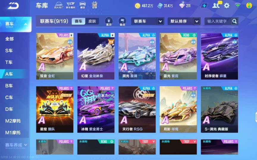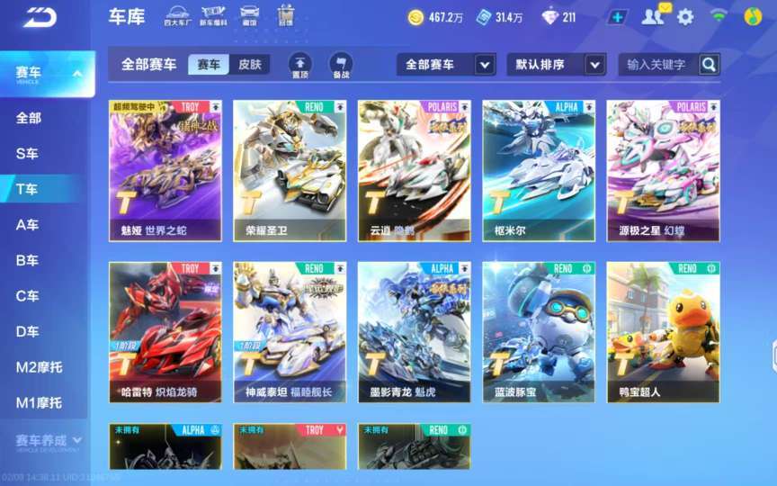 T车8辆,联赛车9辆,枢米尔、青龙、云霄、泰坦、哈雷特、源级、魅娅、荣耀,宠物火龙、瑞泽