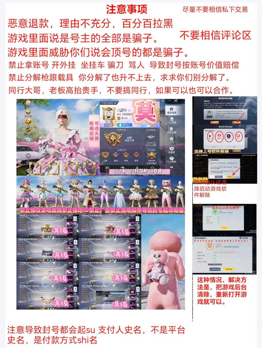 单字ID茣 七把满级枪玛拉沙蒂19万热力值 143粉23枪12车 无敌战神框