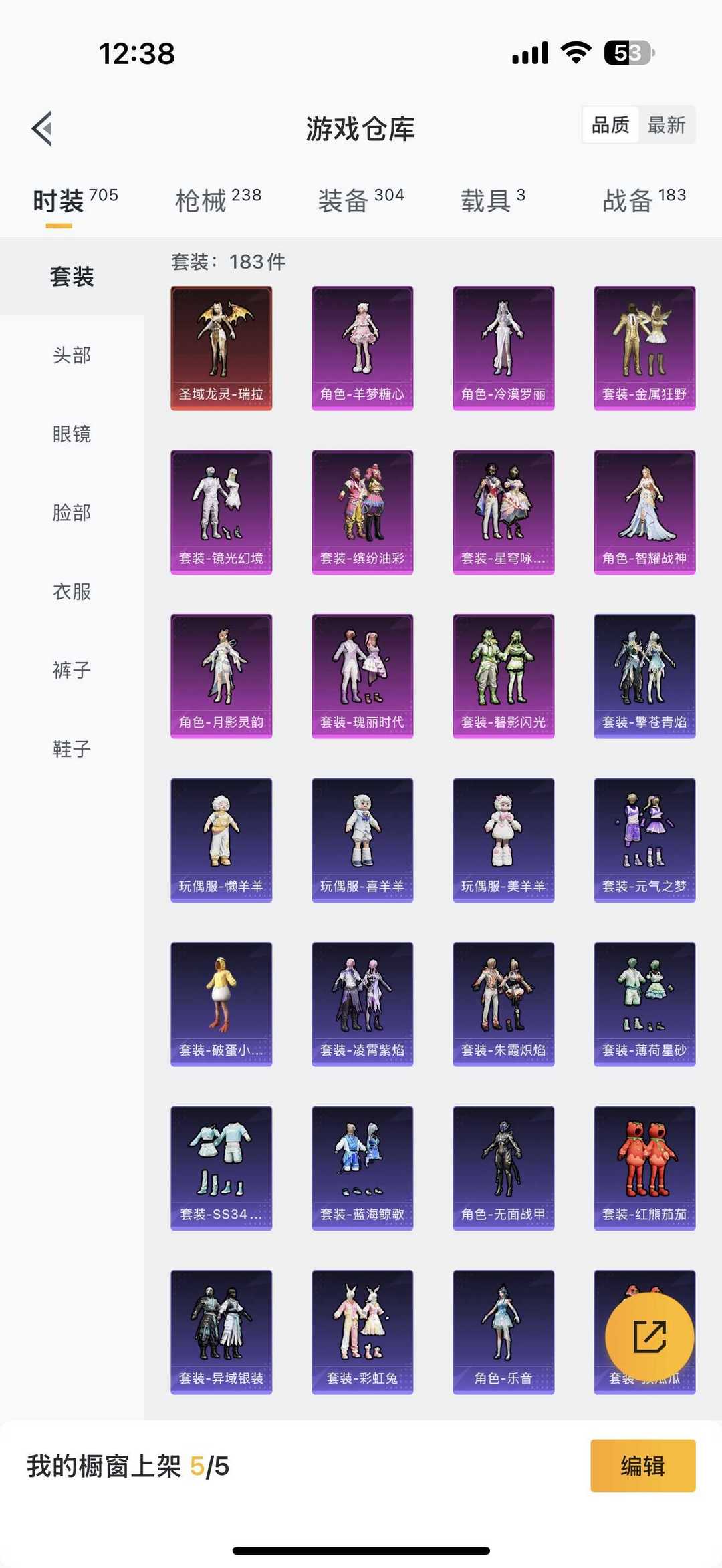 瑞拉神装套-多款特效粉装-多款升级特效枪满级特效碎片雷烟雾-多款飞行器载具皮肤-爽号低价