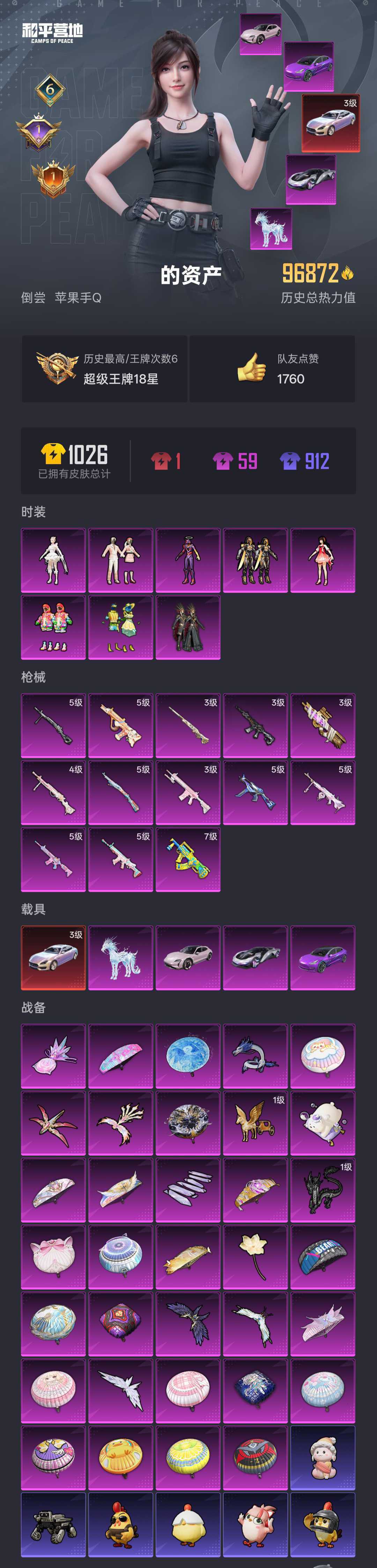 8粉套13升级枪5载具⚡3级幻星粉玛莎⚡小漂亮⚡蓝新紫螳螂⚡千金淑猫第五大道⚡满级香水柠檬⚡时空跃影