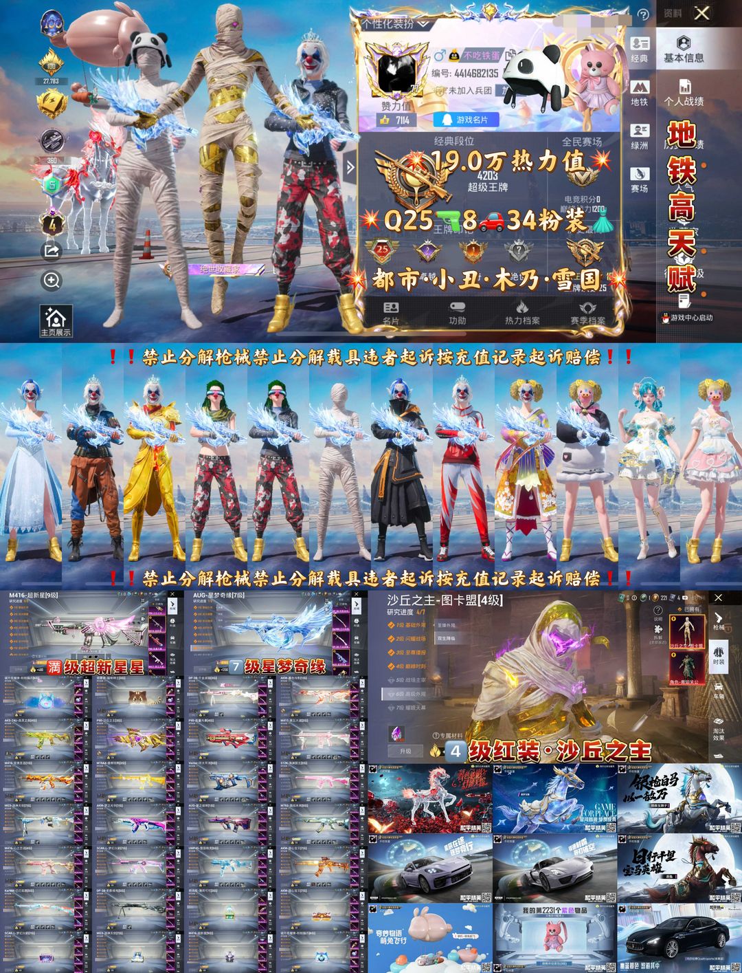 4级图卡盟★9级超新星8级星梦奇缘★小丑都市赤蝎金鞋木乃伊雪国★34粉25特8车萌熊背包手雷