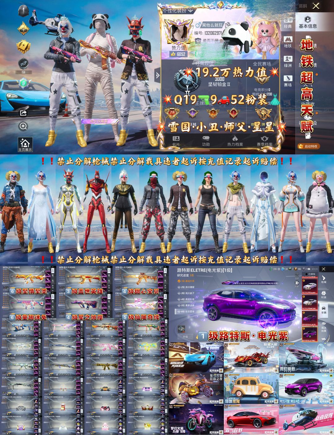 限制: 租号1次及以上 | 撤单率<40%才可租用此帐号装备描述:毁号,涉及毁坏虚拟财产罪及计算机安全罪,请文明游戏素质游戏,让我们共建美好租号平台 【特别事项】 红装可任意分解升级所需要满级的红装 禁止分解枪械载具,违者拉黑起诉赔偿 非账号问题撤单的全部永久拉黑 A.游戏过程中请不要恶意挂机或者不文明发言 B.恶意挂机、顶号等行为将被拉黑无法再次下单 C.进入游戏后中途请勿退出登陆,否则无法再次上号 D.部分账号由于异地登录可能会出现密码错误提示,通常再尝试5-6次后可上号 喜欢本账号请点 ☆收藏☆ 方便下次租用,谢谢光临惠顾