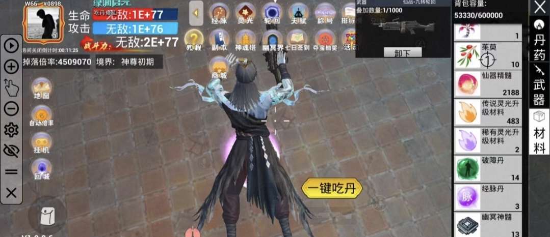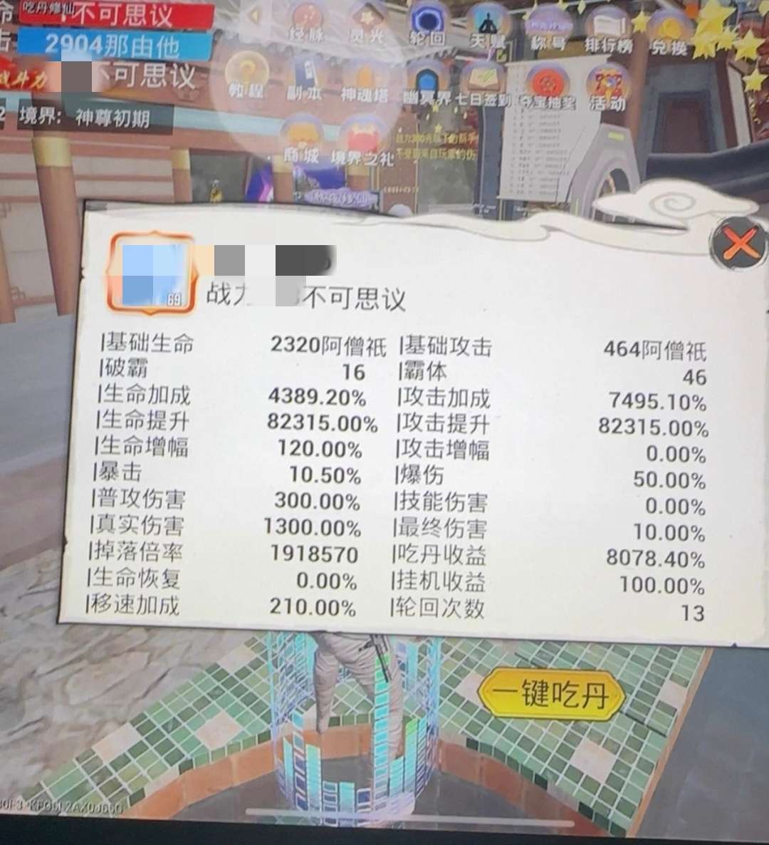 吃丹修仙、战力不可思议、可秒1~13阶、大菠萝、高爆率、极品不可思议号