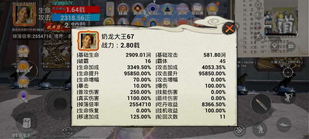 吃丹修仙2.8载,掉落率250多万,宝箱掉落率满天赋,可以带小号朋友吃丹,可打10阶,有蜜罐