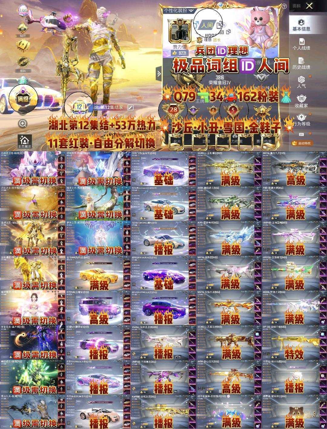 限制: 租号10次及以上 | 撤单率<30%才可租用此帐号装备描述:请勿撩骚卡泡,涉政也会导致封号,以上行为导致封号起诉索赔。 此号价值较高不文明游戏导致封号,一律按照充值金额起诉索赔毁号,禁止分解枪械车辆,恶意分解枪械车辆,一律起诉索赔, 涉及毁坏虚拟财产罪及计算机安全罪,请文明游戏素质游戏,让我们共建美好租号平台 ,供您畅选,感受良好游戏体验! 注意事项: A.游戏过程中请不要恶意挂机或者不文明发言 B.恶意挂机、顶号等行为将被拉黑无法再次下单 C.进入游戏后中途请勿退出登陆,否则无法再次上号 D.部分账号由于异地登录可能会出现密码错误提示,通常再尝试5-6次后可上号 喜欢本账号请点 ☆收藏☆ 方便下次租用号,涉及毁坏虚拟财产罪及计算机安全罪,请文明游戏素质游戏,让我们共建美好租号平台 本游戏账号:133粉64枪20载具内含1飞机3级猫爪手雷星空马 满级红装:精灵之光露米娜、欧若拉、木乃伊、熬渊、妮芮妲 满炫光金宾利皇家紫彩虹光 五级宾利GT 满级甜心首席 满级万古烈焰 满级熔岩统帅 满级玉魂精魄 满级超新星gz 满超新星m4 满级沙漠p90 7级盖世英雄 5级仙履奇缘 5级至情至圣 5级宾利蓝色 5级宾利炫光 1级杜卡迪紫 1级玛莎