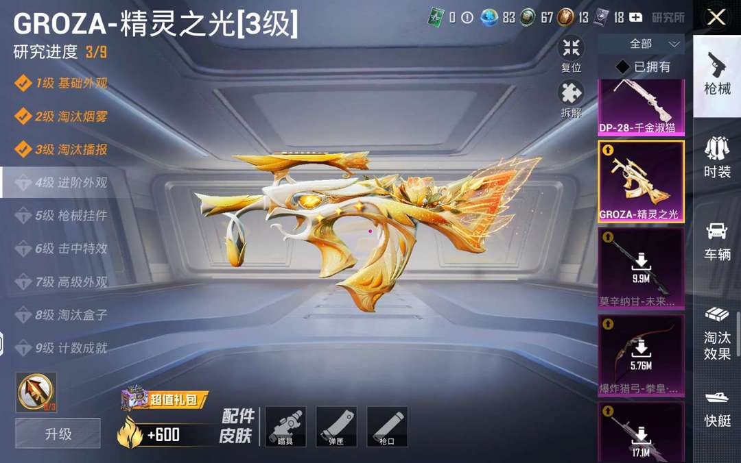 1套红皮 11套粉皮 4辆车皮 7个飞行器 6个特效枪械