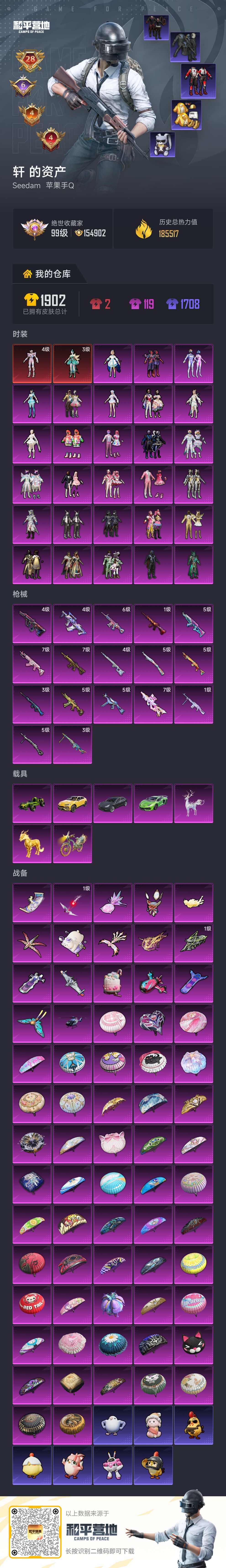 限制: 租号3次及以上 | 撤单率<50%才可租用此帐号装备描述:2红28粉18枪8载具 高印记-战神框 地铁满天赋4级帕修斯 3级初翊 红眼罩 都市 金鞋 新101 深海小丑鱼 猪妹 猫包 熊包 7级仙履奇缘P90 3级辉羽雀灵MG3 7级五爪金龙M4 7级甜蜜誓约M762
