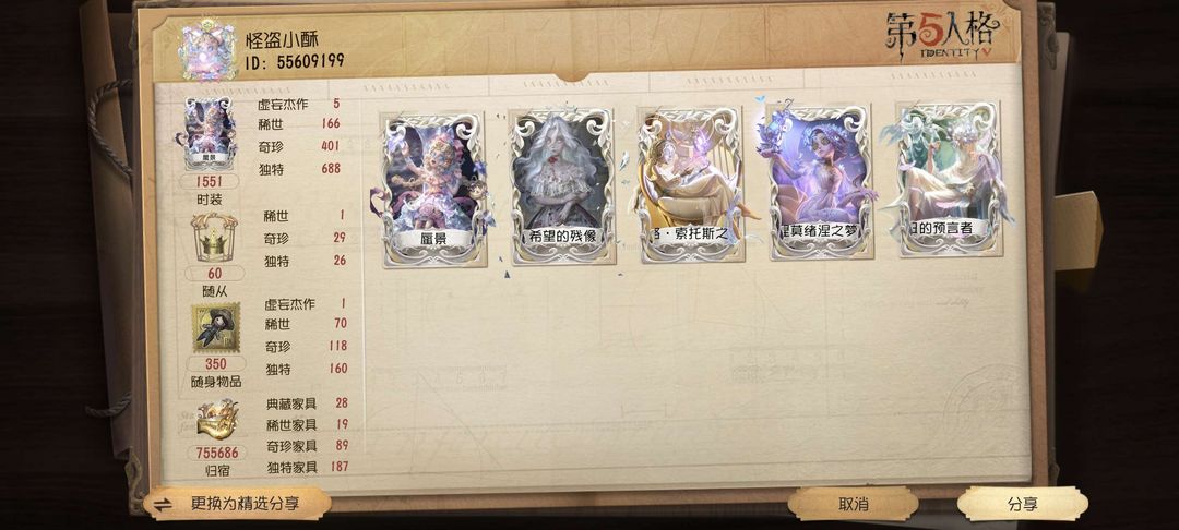 小女孩虚妄蜃景✨233金15万共享✨先知电竞✨六虚妄✨dm白黯绯加特麒麟✨金靴套✨恶之源✨柯南p5