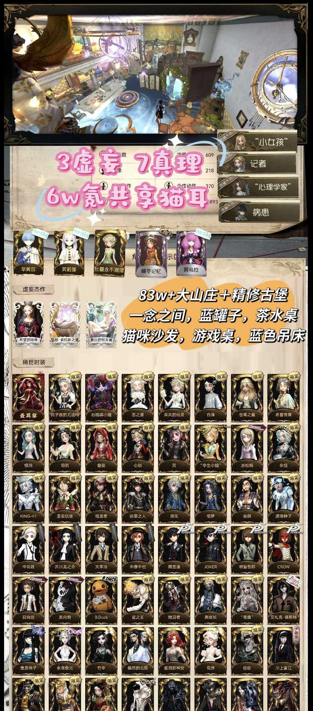 装备描述:号主24h在线,不要想着偷玩,收集全摆对外卖号 若密码有误,5min内处理重新上架 1-挂机封号必报警处理挂机封号损失 查ip 报警处理禁止使用外挂,此帐号非账号问题不可撤单! 2-官方账号密码直接登陆,禁止游戏内刷喇叭说卖号骗人,抓一次直接关进小黑屋,禁止开挂,本账号经过网络财产备案,一直发现直接报警处理 3-账号财产价值很高,本店24小时在线,恶意投诉秒顶改密,直接拉黑,永久不让租 4-使用外挂,脚本等一切破坏游戏平衡,在平台提取实名ip(都是vzfb实名消费)直接立案追责,三倍赔偿账号价值