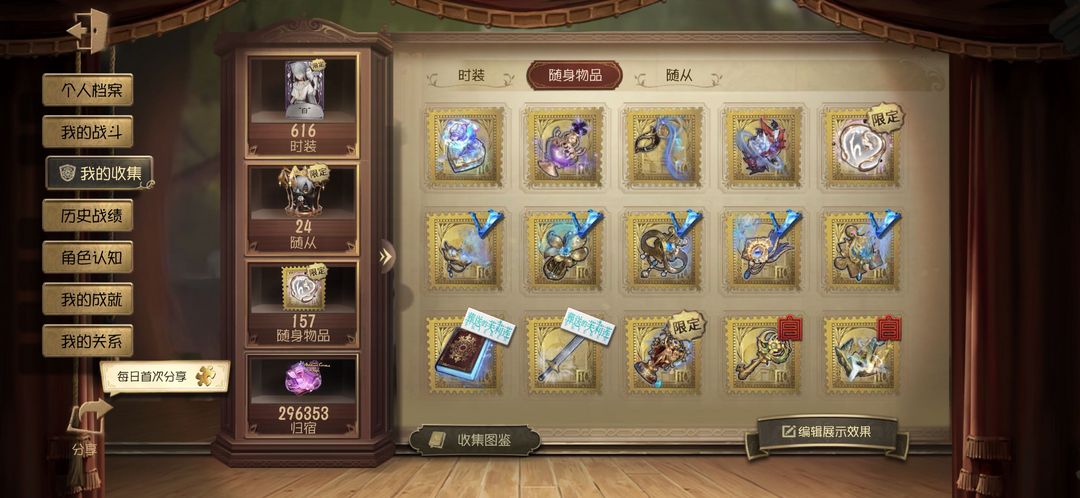 随身物品数量: 157
