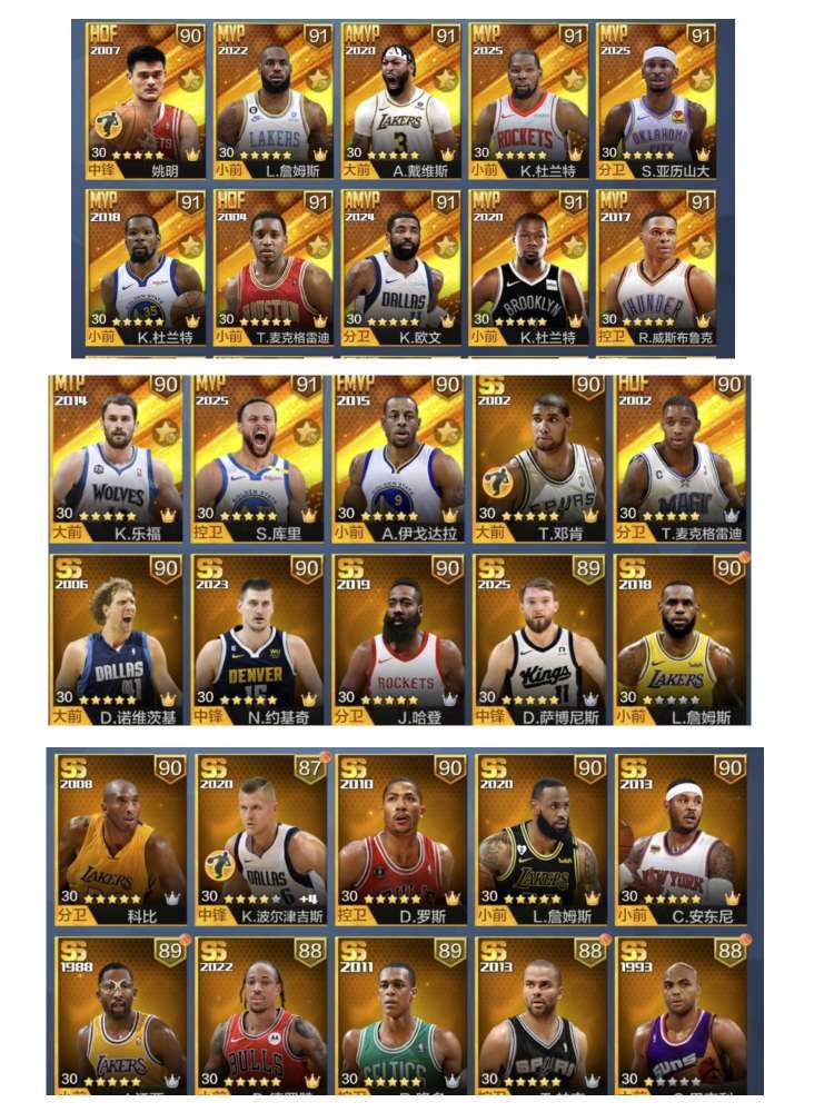 可排位★新库里★新杜兰特★新詹姆斯★天选麦迪罗斯★姚明二专★司机★曼巴科★浓眉★欧文★威少18天选