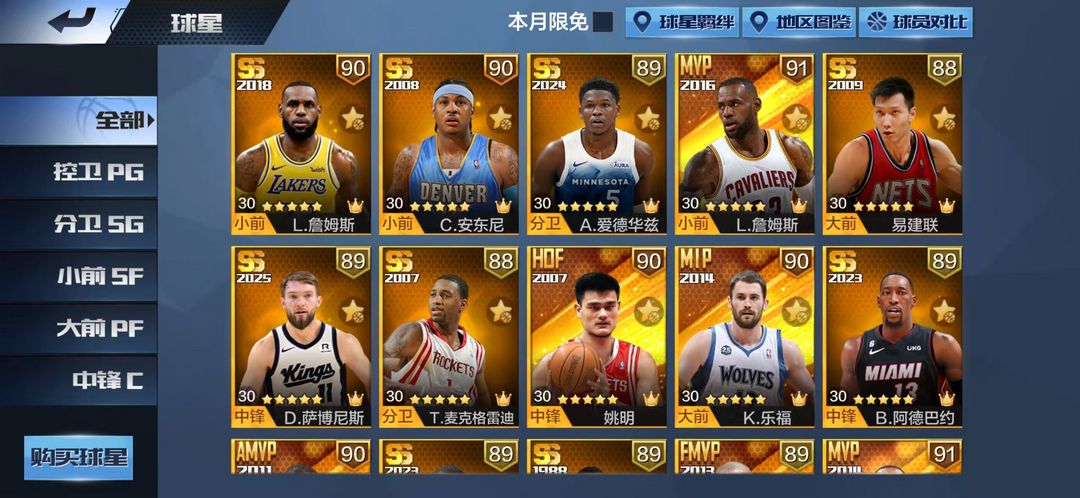 高信誉可排位34点/晋升乐福大本全力船炮张伯伦帕克雷杜鸟眉姚明/小萨阿德巴约易建联利拉德掘金瓜唐斯