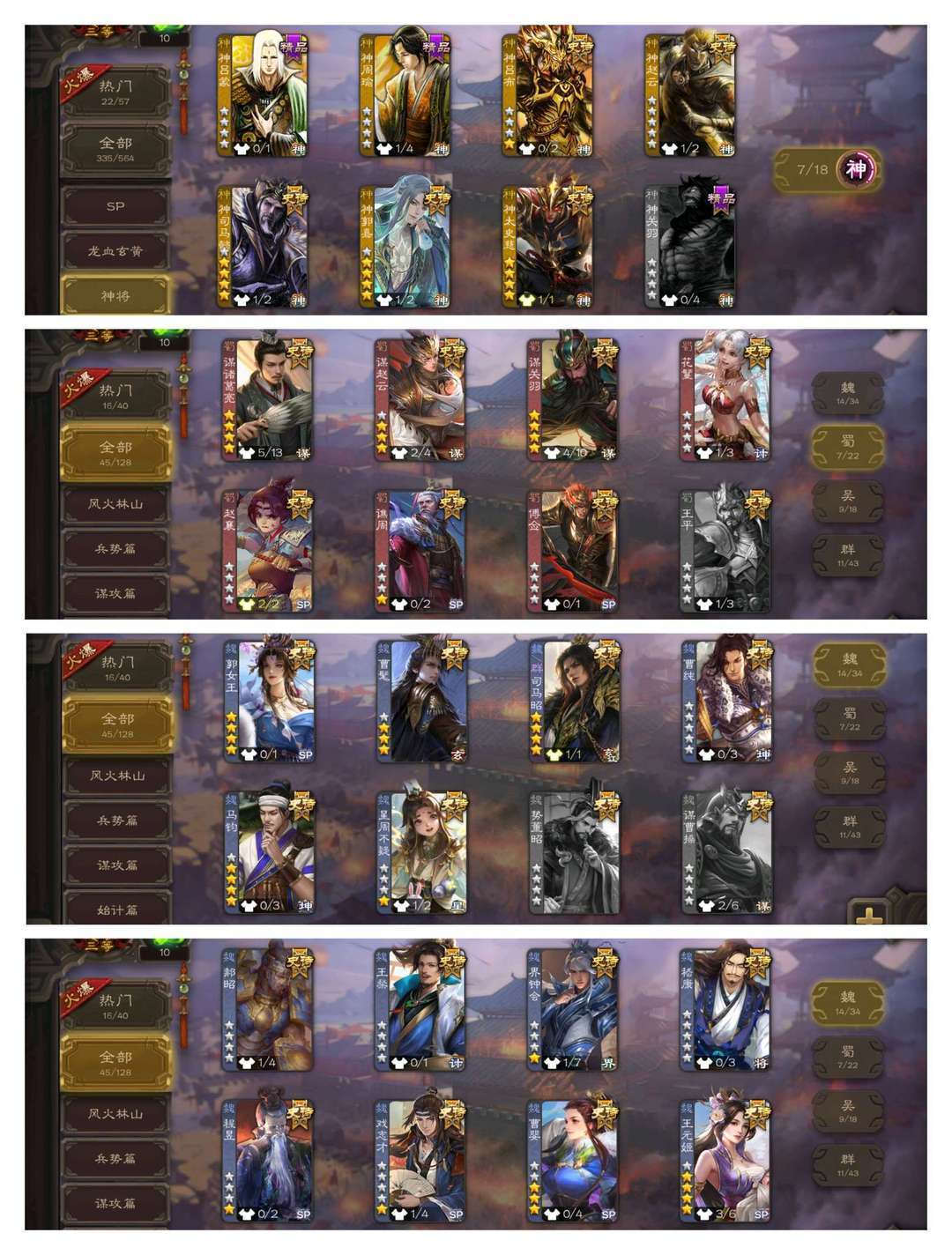 有卡【45史诗大将军】动神郭嘉动神司马懿动孙寒华动谋关羽动谋貂蝉动谋诸葛亮动司马昭动谋陆逊*曹髦傅佥