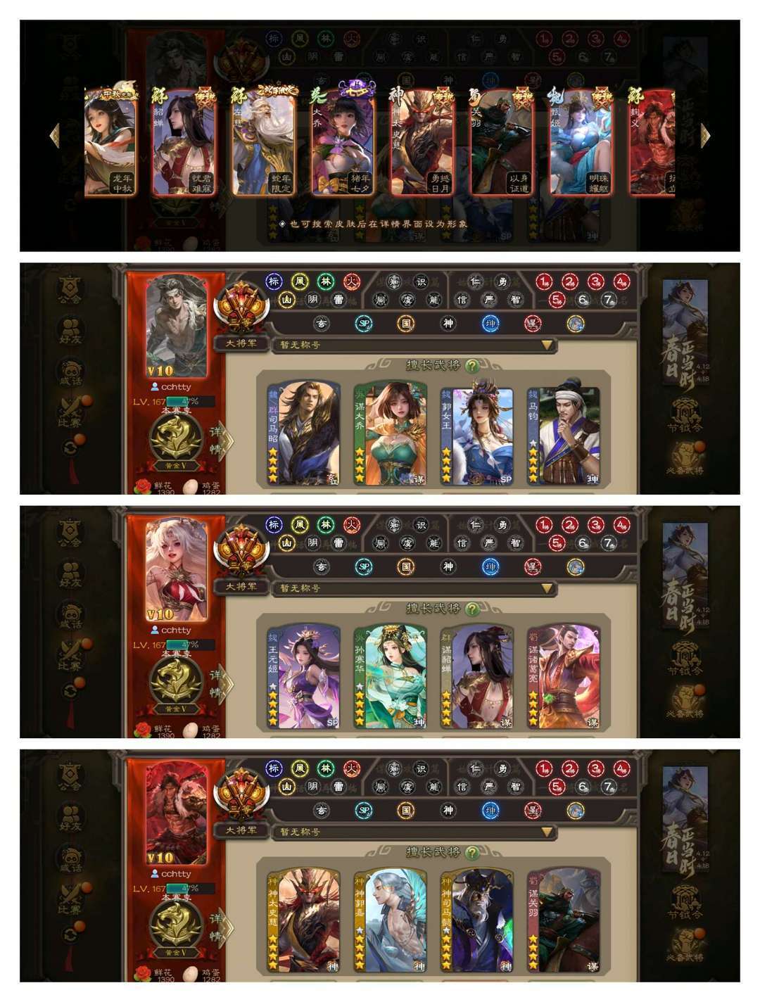 限制: 撤单率<19%才可租用此帐号装备描述:官方三等大将军,有卡,VIP10! 12四星玉龙:奇门动谋貂蝉,回廊动孙寒华,回廊动谋关羽,回廊动神太史慈,回廊动王元姬,动谋诸葛亮动神司马懿动司马昭动神郭嘉动谋大乔,马钧郭女王! 45史诗武将:回廊动聚义,动谋陆逊动留赞动周处动花鬘动曹婴,金界徐盛金神赵云,曹髦张琪瑛sp甄姬星董卓傅佥界钟会鲍信阎象! 104排位武将83国战武将,43动皮75金皮165国战皮肤!