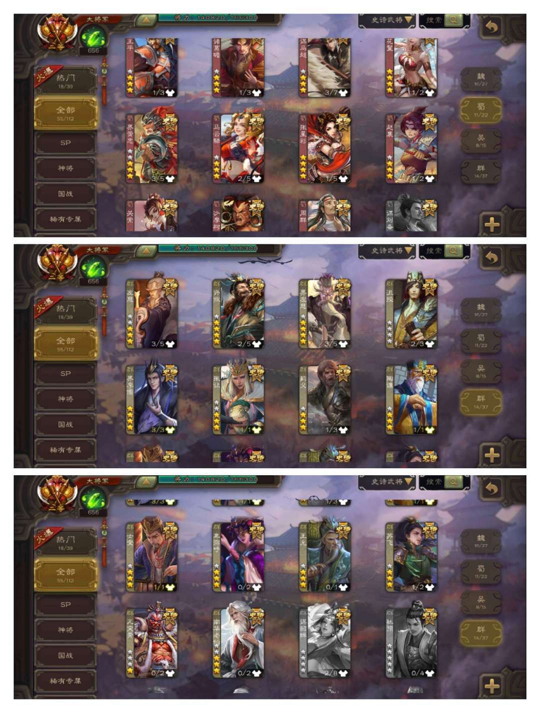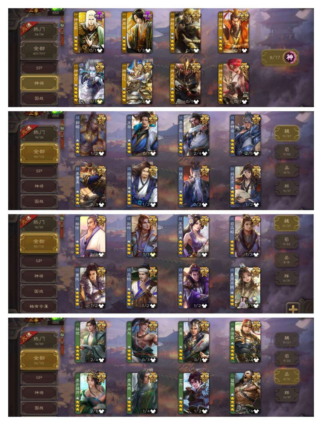 有卡【55史诗二等大将军】动神甘宁动王元姬动界左慈动花鬘动界李儒动界钟会+神孙策马钧界徐盛神赵云