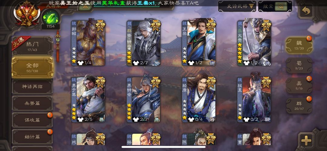二等大将军势钟会回廊动十常侍回廊动神郭嘉回廊文鸯动谋诸葛亮回廊界左慈动神甘宁回廊界钟会张仲景