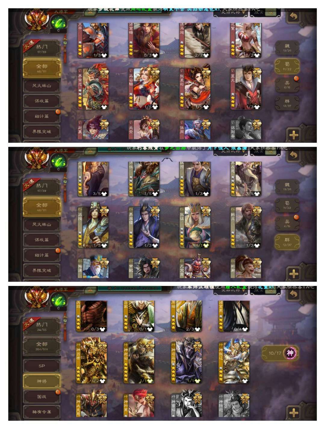 有卡【50史诗大将军】动杜预动神赵云动神司马懿动神吕布+神孙策界徐盛界左慈界李儒界钟会戏志才