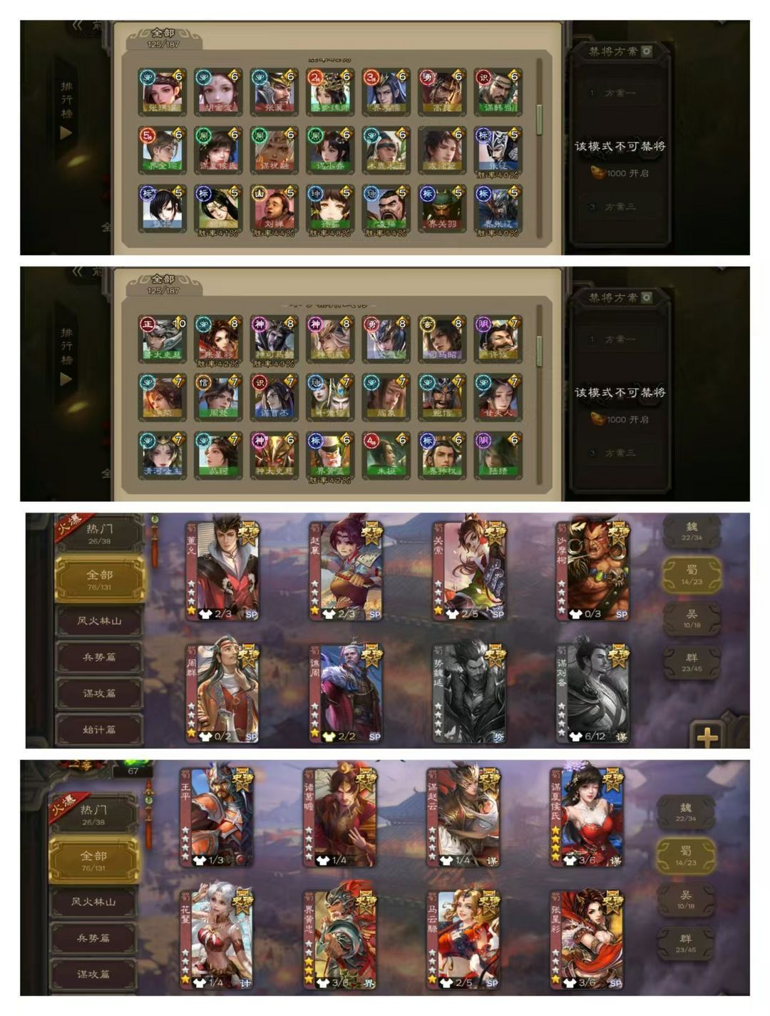 限制: 撤单率<19%才可租用此帐号装备描述:官方一等大将军,无卡,VIP15! 10五星炎龙:回廊双形态至臻动文鸯,回廊动神甘宁,回廊动神荀彧,回廊动王元姬,动刘焉动徐荣动曹婴动戏志才! 17四星玉龙:回廊双形态至臻动十常侍,回廊动界徐盛,回廊动神太史慈,回廊动卑弥呼,动神司马懿动清河公主动留赞动神赵云动谋夏侯氏,马钧南华老仙王璨! 76史诗武将:动谋曹丕动司马昭动界左慈动界钟会动花鬘,金谋曹仁金鲍信金界李儒金张让,势太史慈杨彪神陆逊张琪瑛,阎象友徐庶司马孚! 125排位武将100国战武将,107动皮195金皮245国战皮肤!