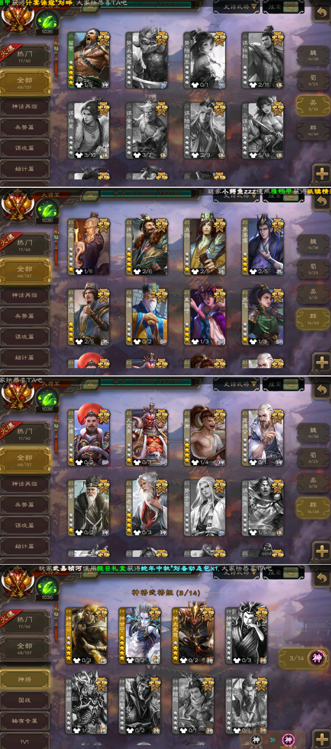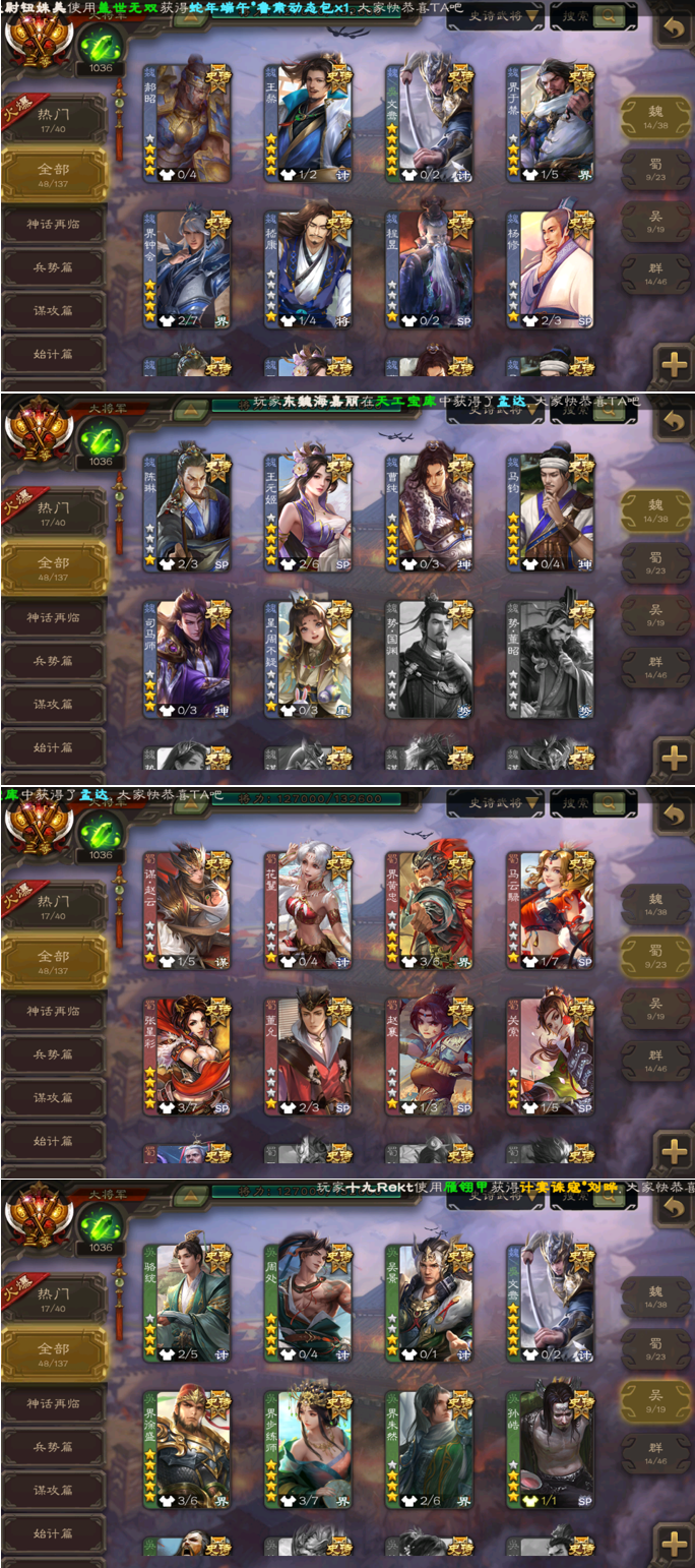 装备描述:◆◆魏◆◆文鸯、界钟会、马钧、王元姬、星周不疑、司马师、曹纯、程昱、郝昭、王粲、界于禁、陈琳、杨修、嵇康 ◆◆蜀◆◆花鬘、关索、张星彩、谋赵云、谯周、赵襄、界黄忠、董允、马云 ◆◆吴◆◆界徐盛、文鸯、留赞、骆统、周处、界步练师、界朱然、吴景、孙皓 ◆◆群◆◆界沮授、许攸、界李儒、南华老仙、祢衡、卑弥呼、郑玄、左慈、沮授、庞德公、公孙康、兀突骨、苏飞、陶谦 ◆◆神◆◆神甘宁、神太史慈、神赵云、神诸葛亮