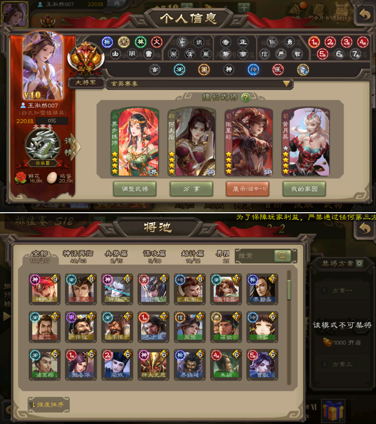 【锦鲤】117排位美女排面神甘宁大将军/文鸯/回廊界钟会/拍手王元姬/马均南华老仙/歌王刘赞