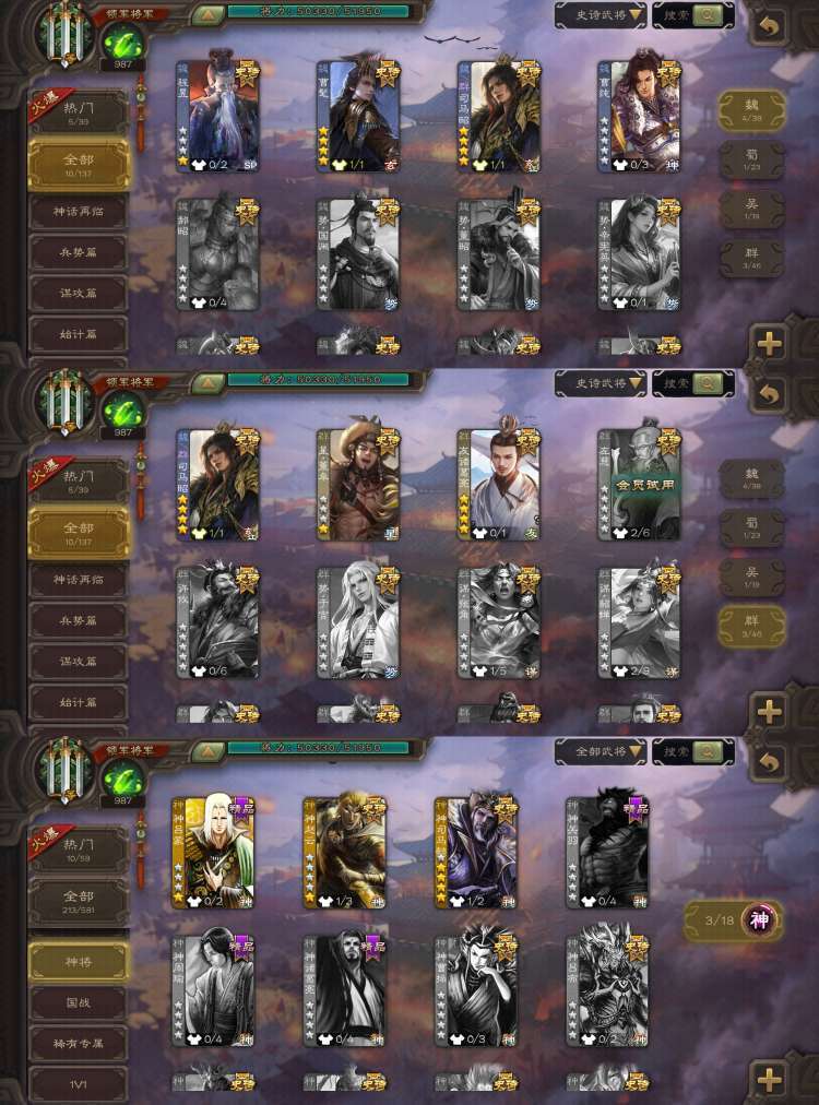 装备描述:88排位武将★10史诗枭龙破渊曹髦友诸葛亮动神司马懿司马昭动花鬘动界徐盛双形态曹髦回廊星董卓曹髦神赵云甘夫人诸葛恪张春华动星徐晃谋小乔李遗谋诸葛瑾谋郭嘉谋夏侯渊势田丰界满宠陈震崔琰谋卢植谋周瑜谋高顺来敏势夏侯尚界孙尚香鲁芝司马伷贾充