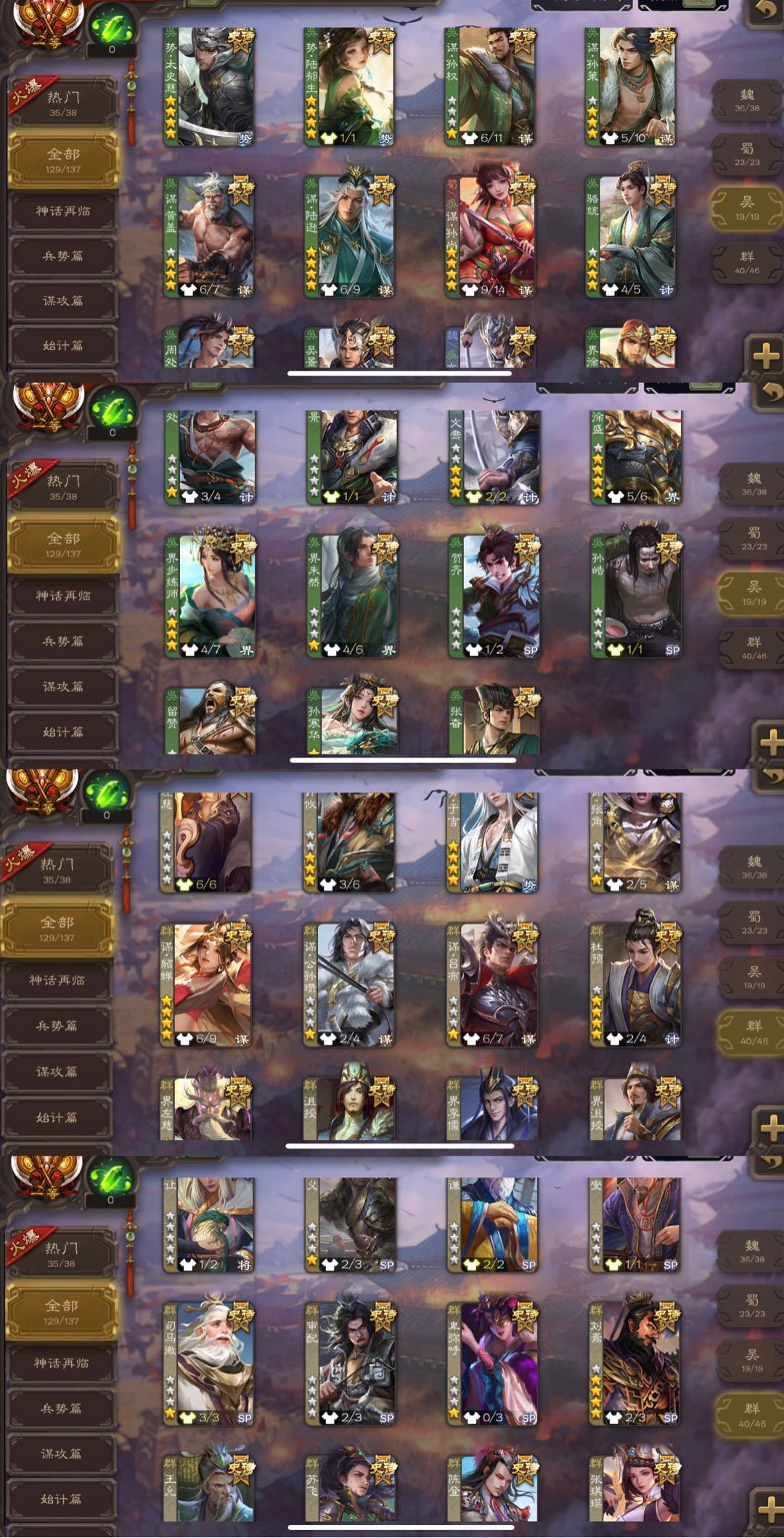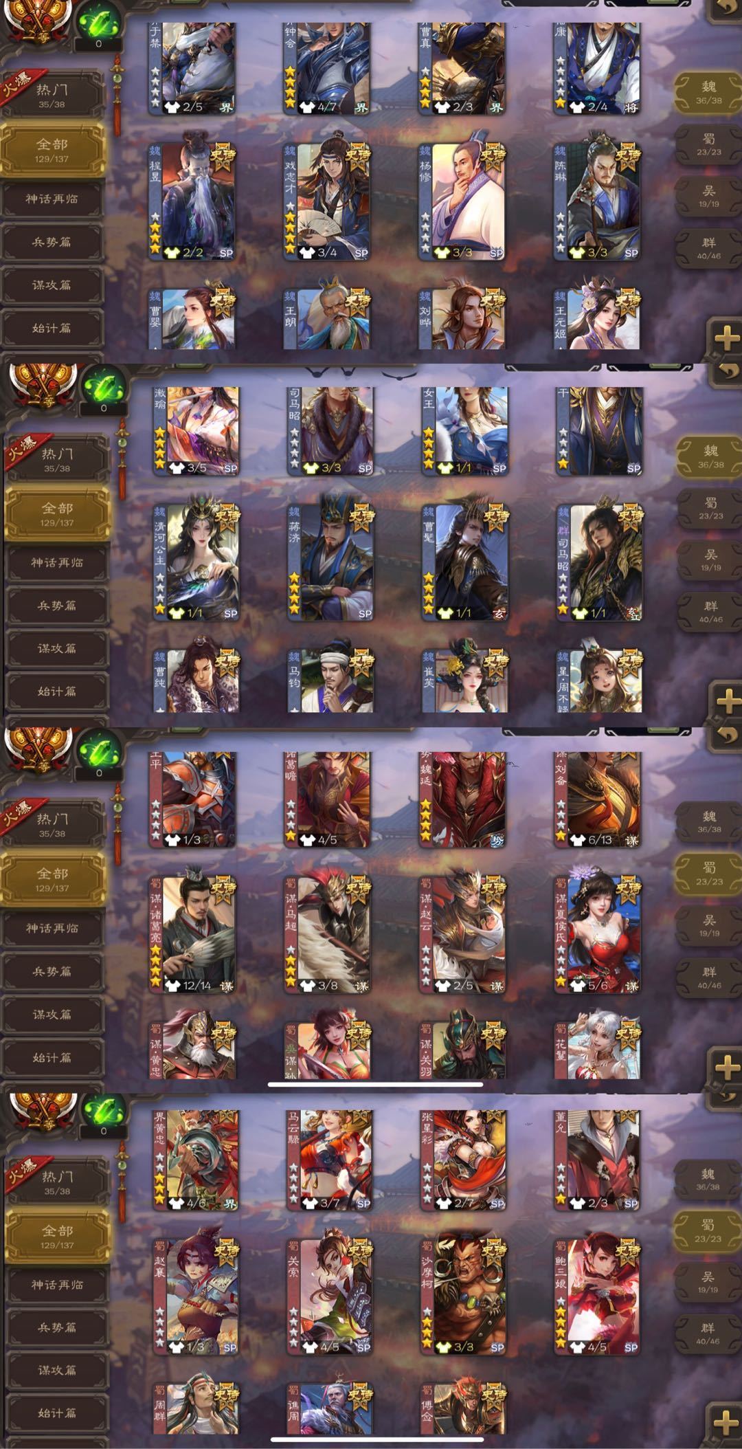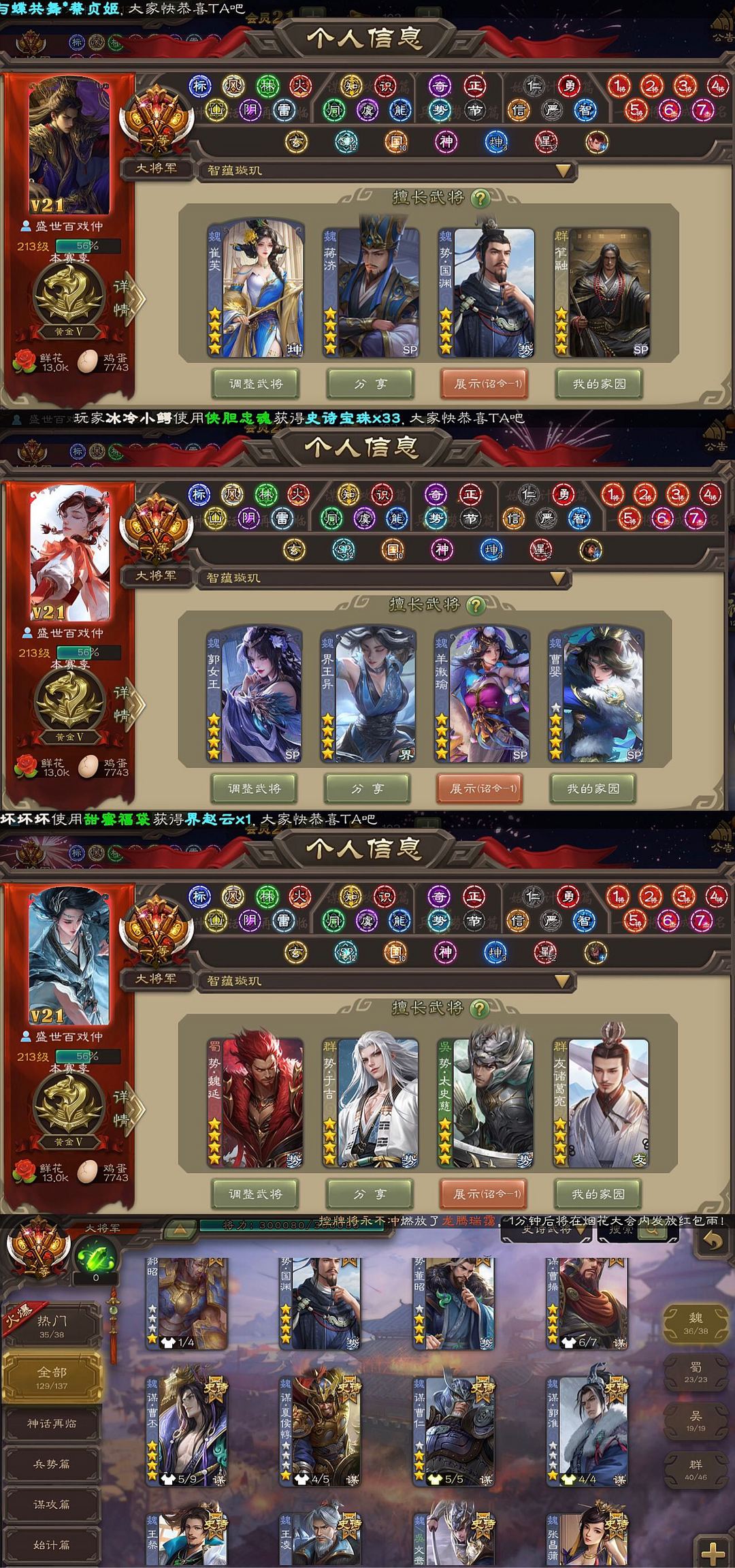 限制: 撤单率<20%才可租用此帐号装备描述:◆131SS武将◆30万将力一等大将军◆165动态皮肤◆213排位将池◆新出史诗和热门回廊齐全!三卡充足!游戏动态背景图都有! ◆郑重承诺:出租时间到时会改密,但不会秒顶号、会延迟15分钟顶号!注意合理安排游戏时间哦!如果有提前顶号、注意查看号子出租状态! ◆◆逃跑拉黑◆◆上任租客游戏快速过完就行 ◆崔芙/新回廊曹髦/回廊郭女王/势辛宪英/蒋济/势国渊/笮荣/势陆郁生/手办鲍三娘/手办曹颖/势魏延/友诸葛亮/势董昭/新回廊刘焉/势于吉/势太史慈/谋黄忠/谋孙策/谋陆逊/谋吕布/回廊杜预文鸯钟会/谋曹仁/谋曹操/谋夏侯/动态神司马懿/谋曹丕/司马昭/神鲁肃/动态谋诸葛亮/回廊神荀彧/谋貂蝉/孙寒华/羊徽瑜/张昌蒲/sp甄姬 ◆友徐庶/闫象/鲍信/谋黄月英等排位奖池214 ◆下架了就是线下被租了! 借词锦鲤木木旗舰清风狼哥珍藏喜鹊神豪