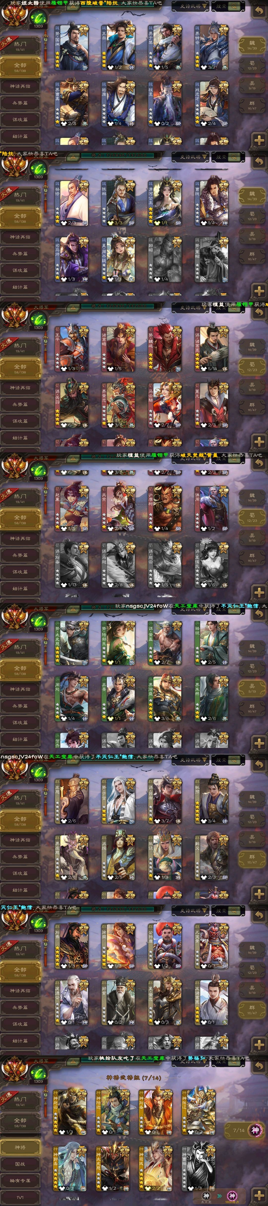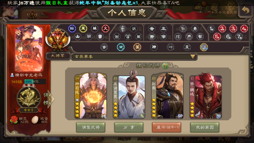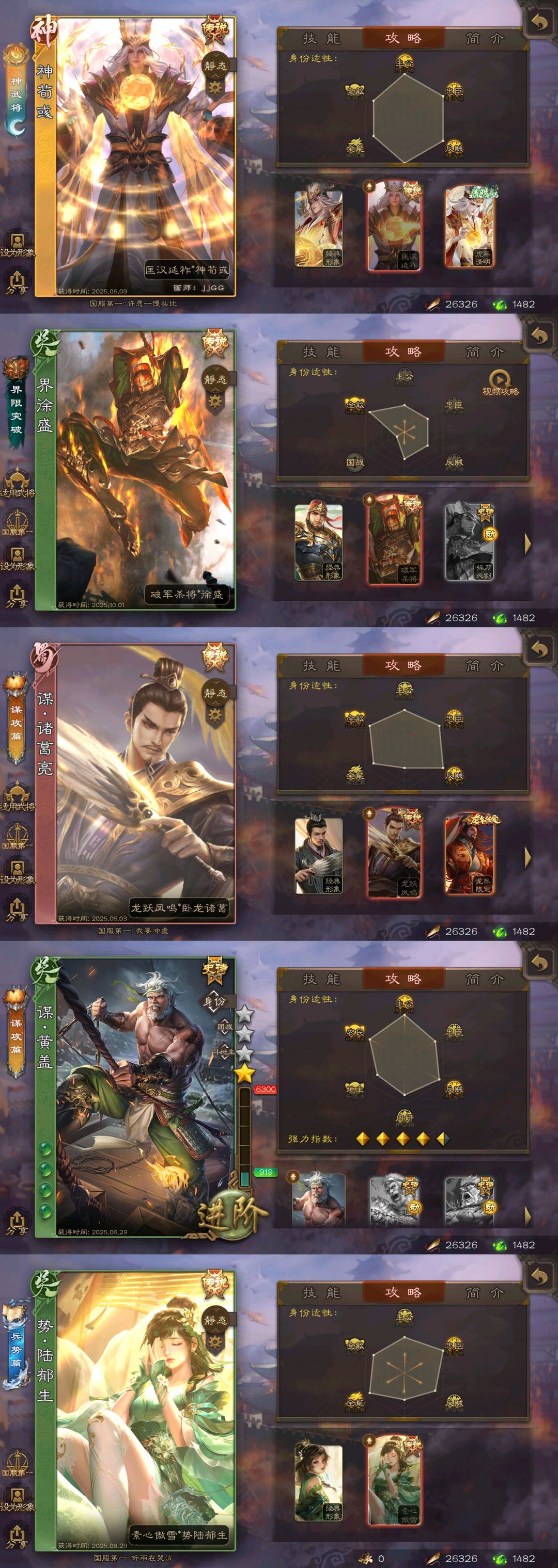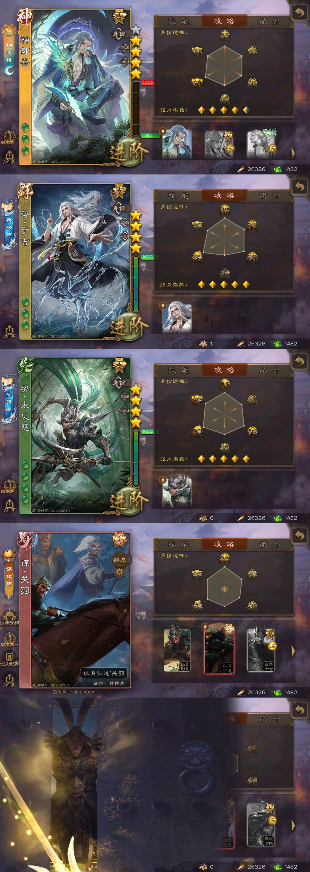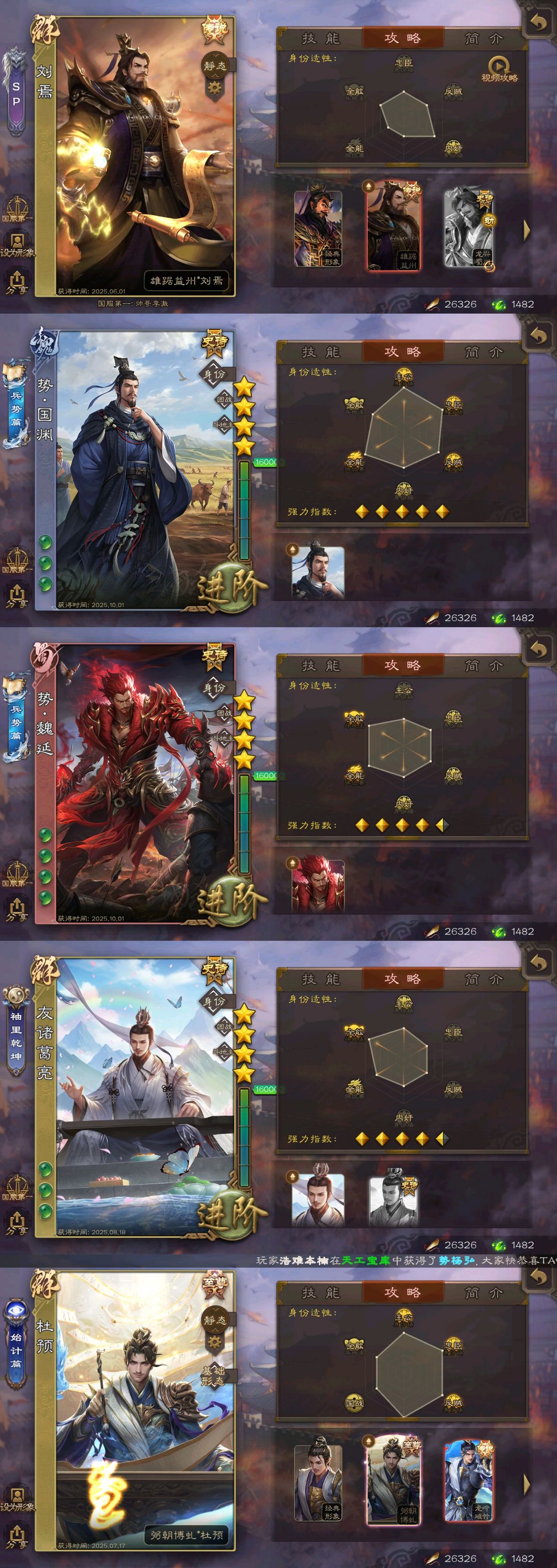 有卡大将军✨势魏延✨势国渊✨动刘焉友诸葛亮✨至臻杜预✨双动神荀彧✨神郭嘉势太史慈势于吉谋吕布
