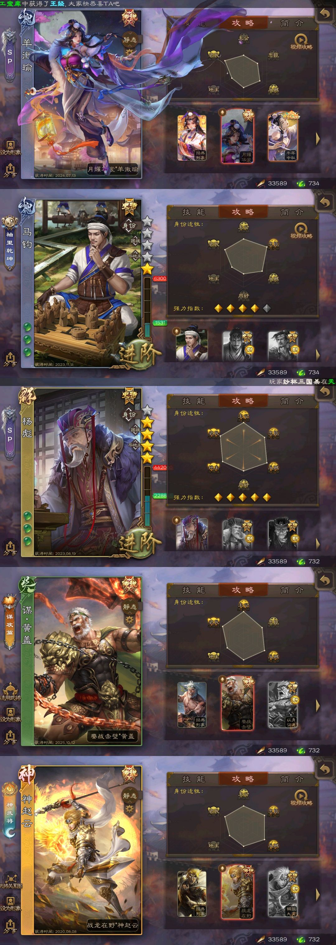 有卡65史诗✨势魏延✨动刘焉✨笮融✨动态神郭嘉鲍三娘神荀彧文鸯杜预羊徽瑜✨曹髦张奋谋貂蝉马钧