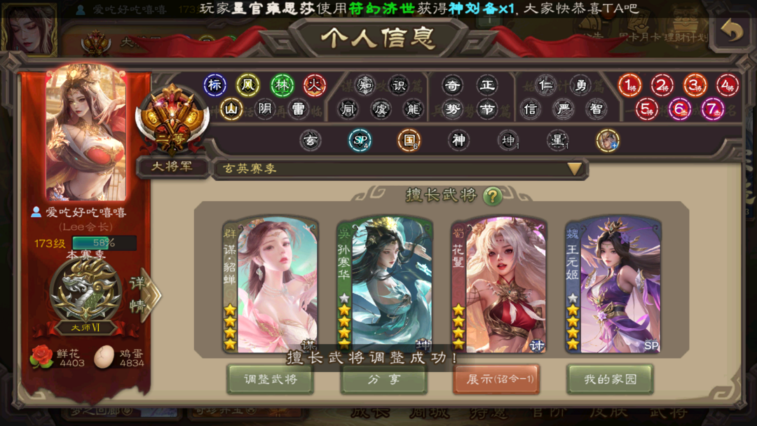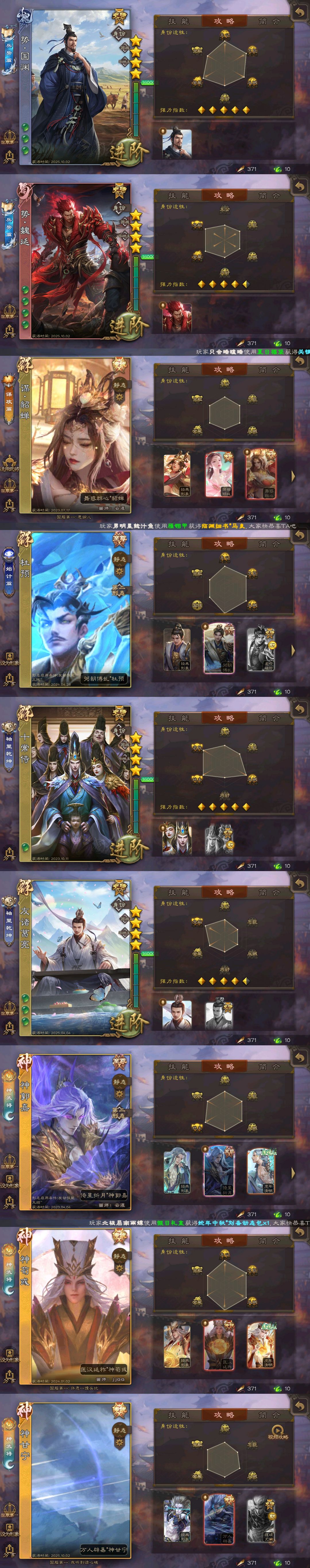 有手气卡✨势魏延✨势国渊✨友诸葛亮✨双至臻神郭嘉杜预✨双动神荀彧孙寒华动神甘谋貂蝉✨十常侍曹髦