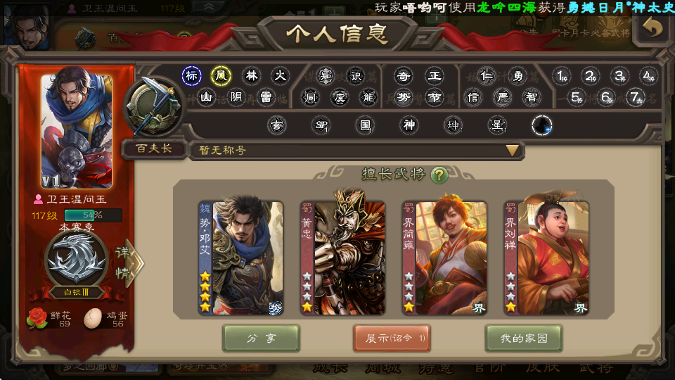 装备描述:新品尝鲜❤️❤️金皮玉龙势邓艾❤️低官阶炸鱼号 新品蹲坑军八恶心将势邓艾玉龙免费点 以及各种史诗精品将