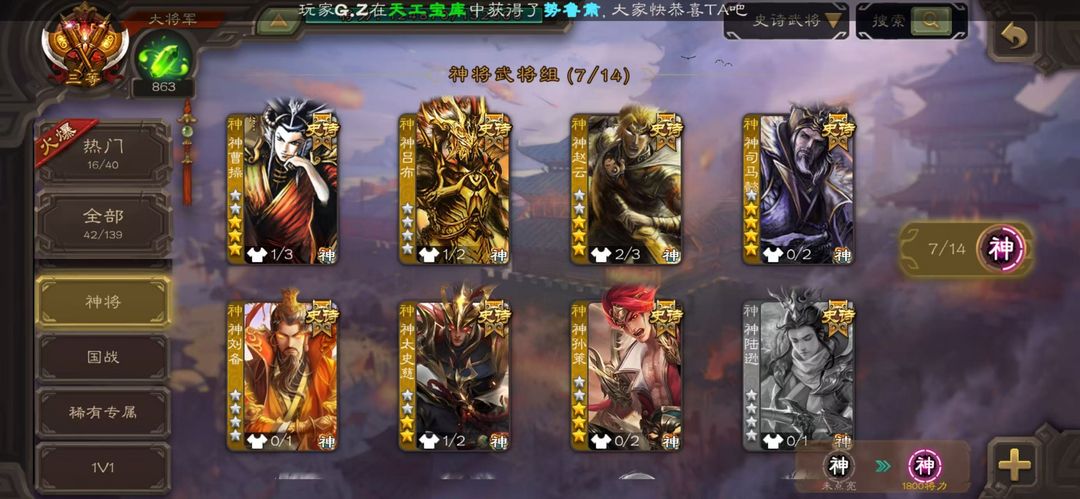 限制: 租号2次及以上 |装备描述:动态界钟会☆戏志才☆动态王元姬☆动态星周不疑☆花鬘☆骆统☆吴景☆动态界徐盛☆谋张角☆动态界左慈☆动态界李儒☆动态白马☆动态卑弥呼☆裴秀☆张琪瑛☆动态星甘宁☆星董卓☆神吕布冠绝天下☆动态神赵云☆动态神太史慈