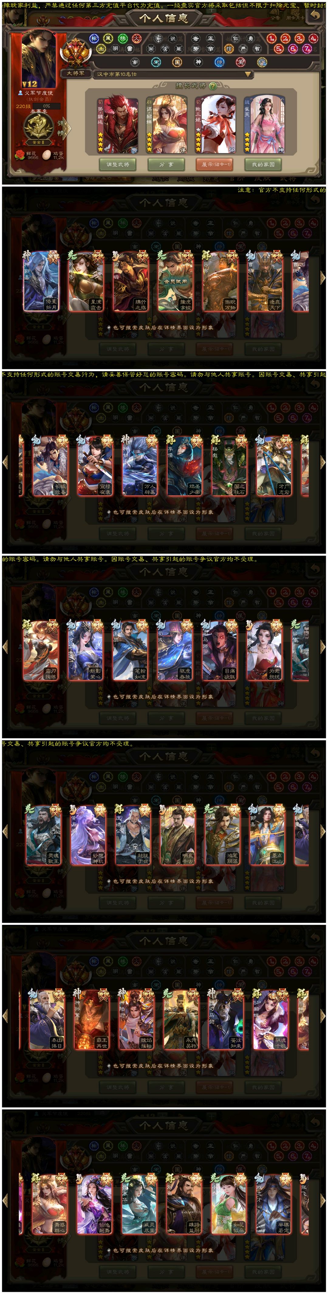 限制: 租号2次及以上 |装备描述:【VIP12】一等大将军 崔芙 动曹髦 势魏延 动刘焉 至尊神郭嘉 动鲍三娘 动神司马懿 动司马昭 动神甘宁 动界钟会 动清河公主 神吕布 神赵云 动神陆逊 神刘备 神张辽 神太史慈 郝昭 势董昭 界于禁 动界曹真 嵇康 程昱 动戏志才 杨修 陈琳 动曹婴 动王元姬 SP司马昭 动曹纯 动诸葛瞻 动谋诸葛亮 动谋马超 动谋赵云 动谋夏侯氏 动谋孙尚香 界黄忠 动势陆郁生 界徐盛 动界不练师 动留赞 动孙寒华 动左慈 谋张角 动谋貂蝉 动界左慈 动界李儒 张让 陶谦 兀突骨【87史诗】◆◆1.软件24小时监控,撤单后自动改密顶号,不用想着白嫖。 2.逃跑造成封号,必拉黑, 3.非账号本身问题,撤单必拉黑。 4.卡可正常使用,恶意消耗必拉黑。 5.由于封号原因全部账号会自动顶号 6.账号还在持续更新,会有更多的优质账号提供给租客,欢迎选购。