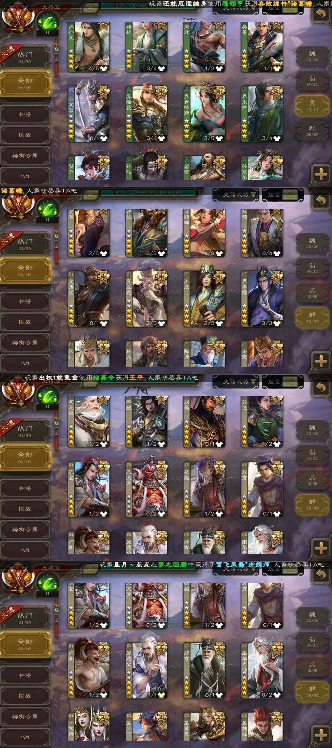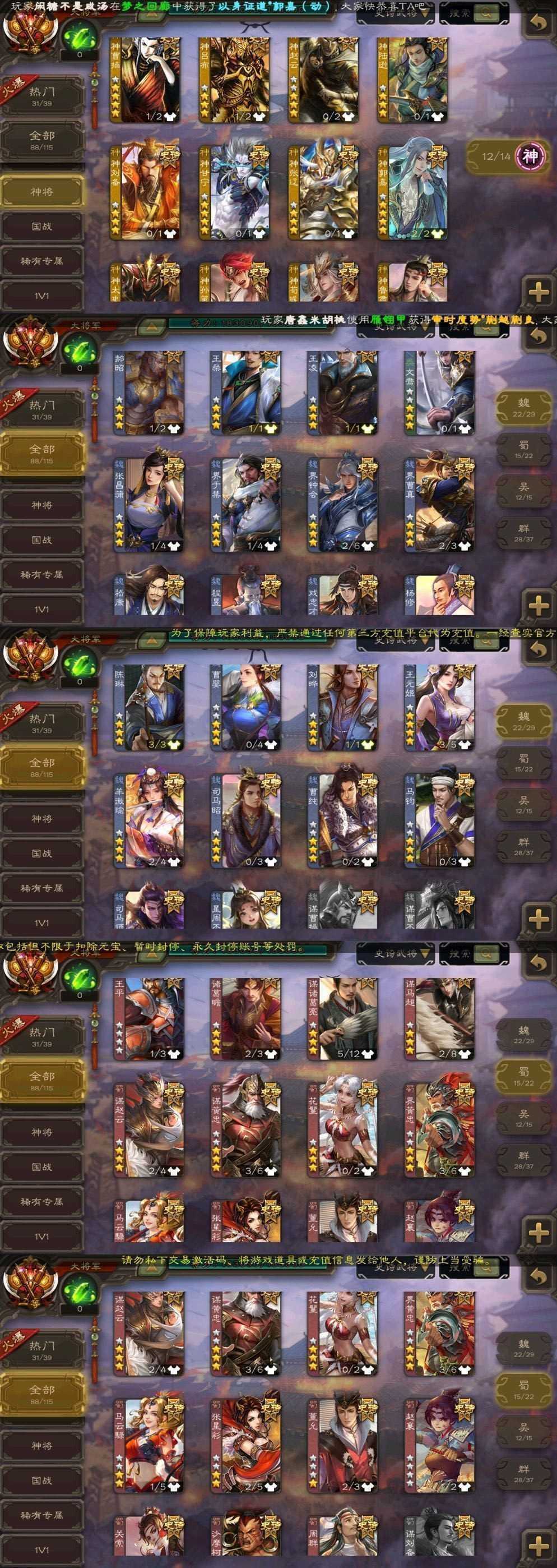 x39⭐伪全扩一等大将军❤️曹麾文鸳活动全氪❤️神鲁肃刘焉回廊神郭嘉动神荀彧动神曹操神甘宁