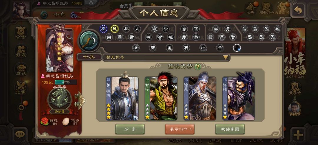 限制: 租号1次及以上 | 撤单率<15%才可租用此帐号装备描述:【有卡有豆】丨势桓阶丨势桓阶新武将尝鲜鱼小号,新武将炸