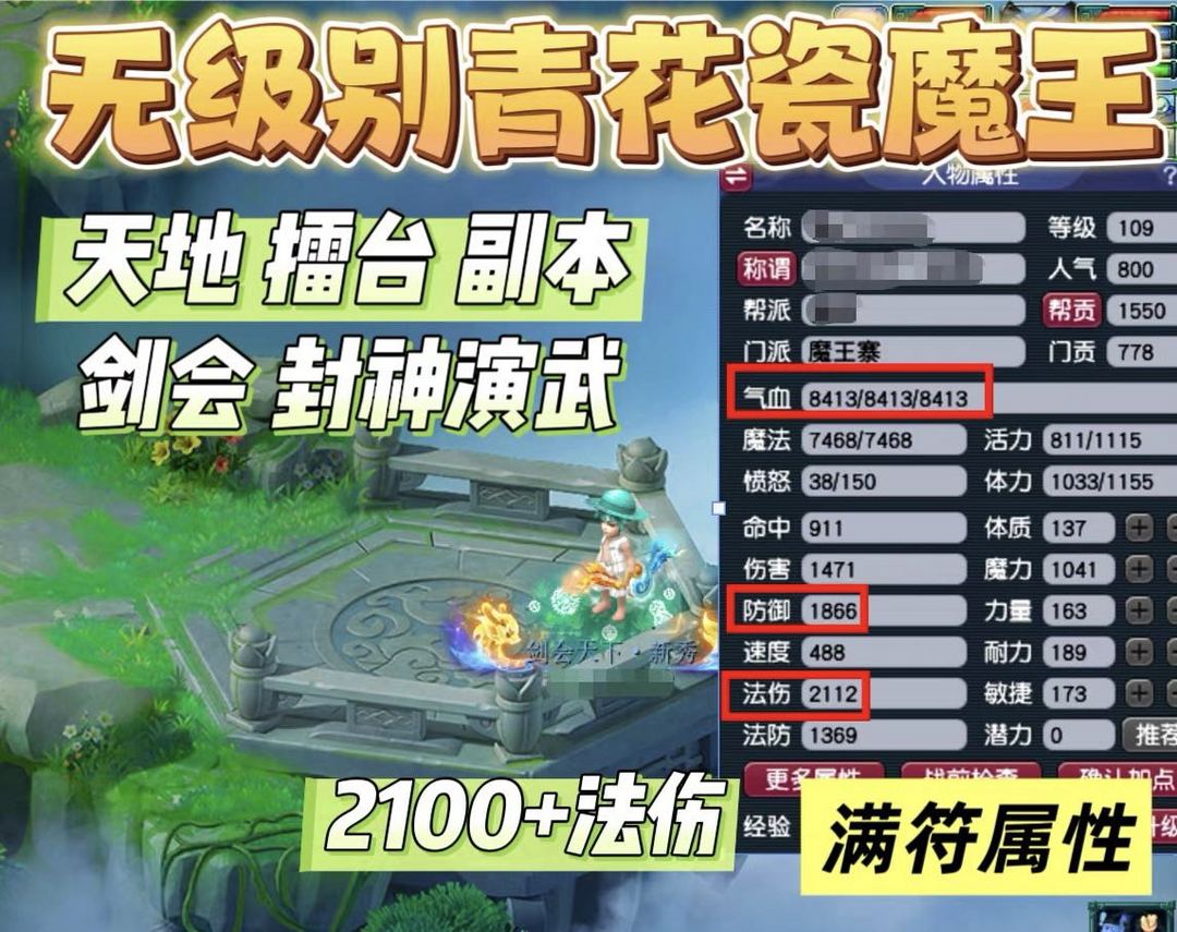 ✨梦幻西游租号✨109无级别青花瓷大魔王⭐擂台任务pk天罡地煞抓鬼