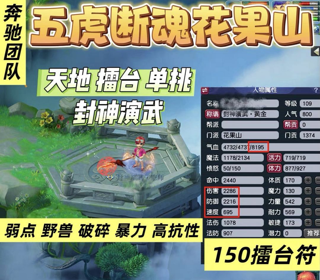 ✨梦幻西游租号✨109无级别花果山,属性完美,目前版本擂台物理系一哥