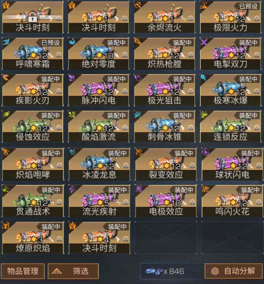 大步枪,3个大称号,满腰带全10射速进阶,12核芯19个,配件全部20。