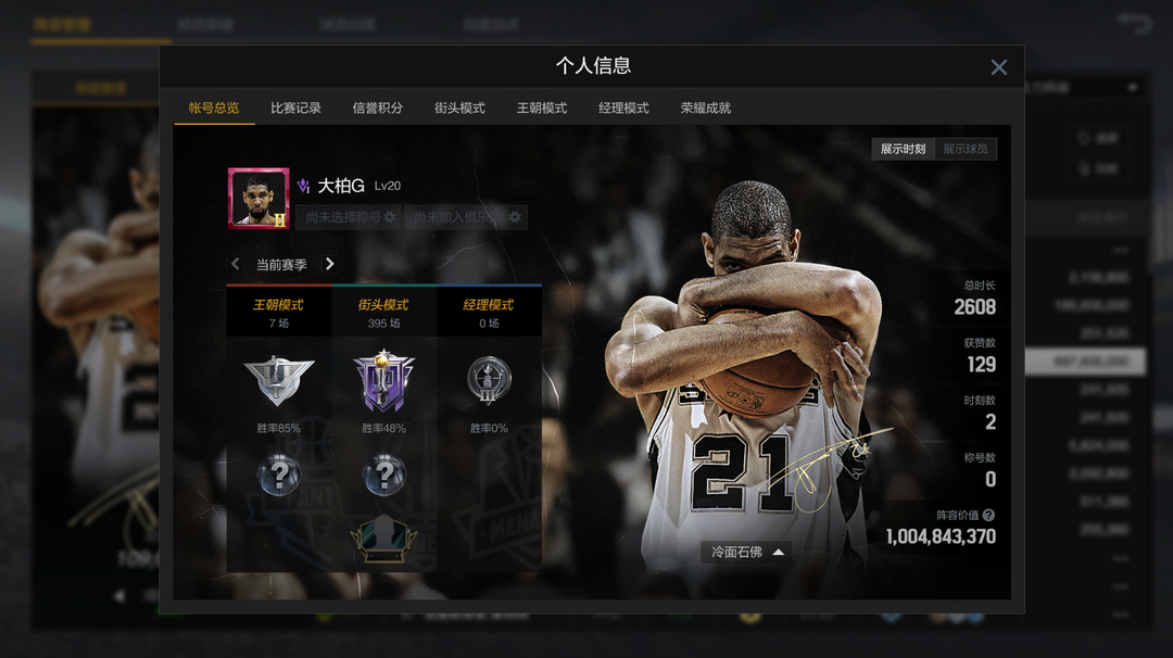 ⭐可排位,段位:巨星⭐满突双时刻邓肯,冷面石佛+圣城基石⭐5图95乔丹,新陈列室⭐