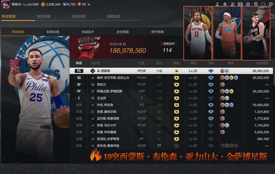 ✅【低段位可排位】10突X10西蒙斯⭐️亚力山大⭐️布伦森⭐️X1金萨巴尼斯⭐️白边⭐️龙之队