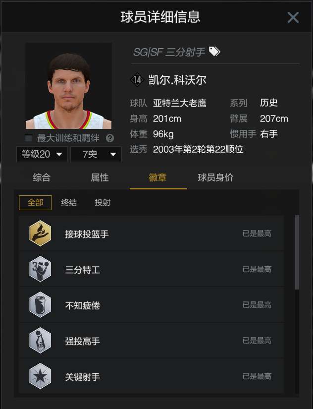 装备描述:满图老鹰神射手科沃尔⭐收藏林书豪⭐三模式都能玩,可排位