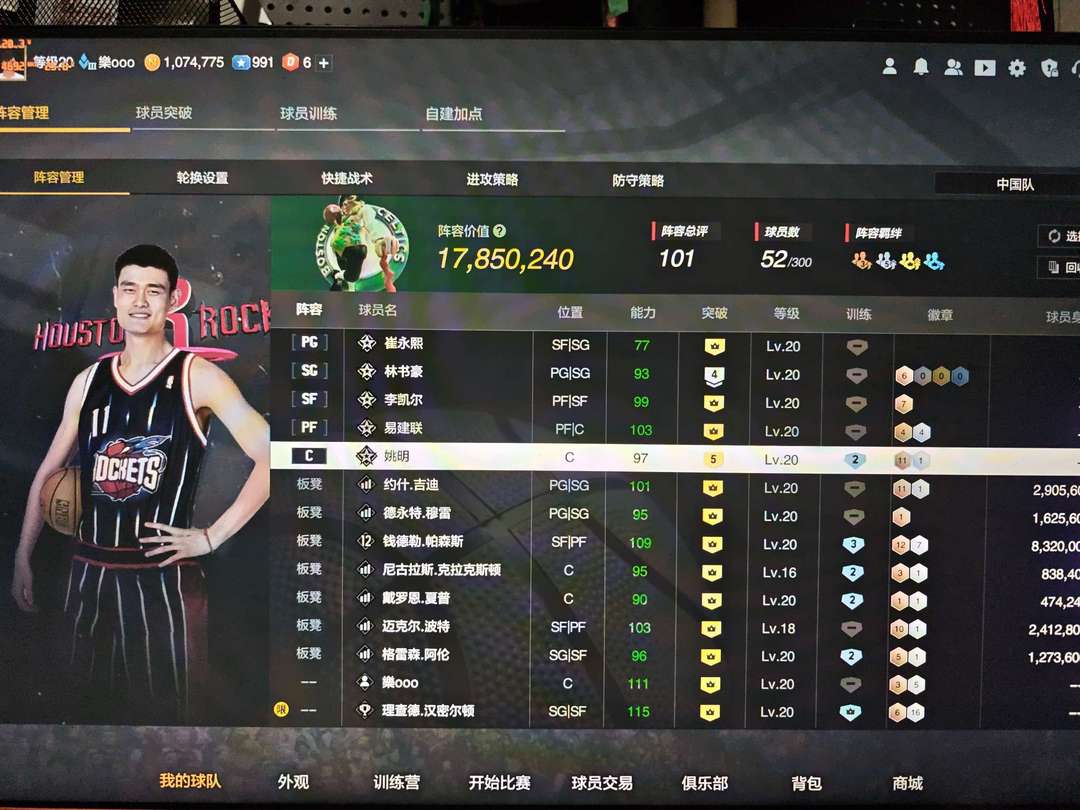 装备描述:10突满训易建联、李凯尔、帕森斯、小波特、崔永熙、吉迪、篮板精英、穆雷。衣服多,超多特训,还有姚明林书豪段位低,炸鱼塘,国家队王朝