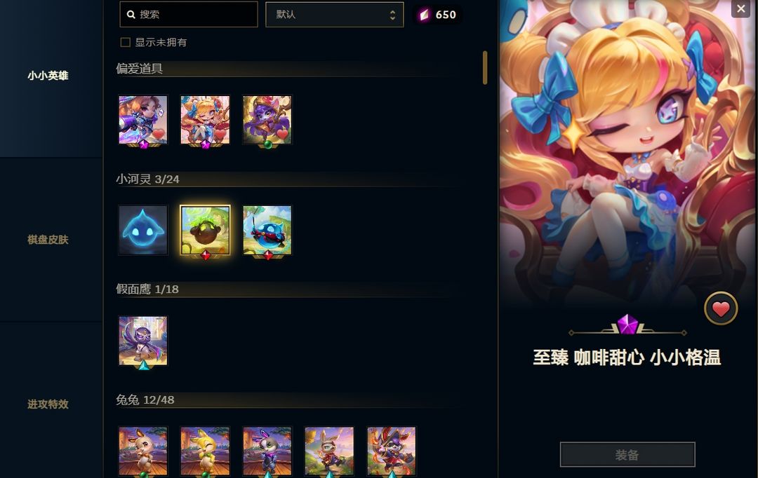 装备描述:详细看图咖啡甜心小小格温,甜心咖啡厅棋盘匹配有电玩女神,云顶特效攻击各种,女枪小小英雄,峡谷还有很多皮肤,可以排位匹配