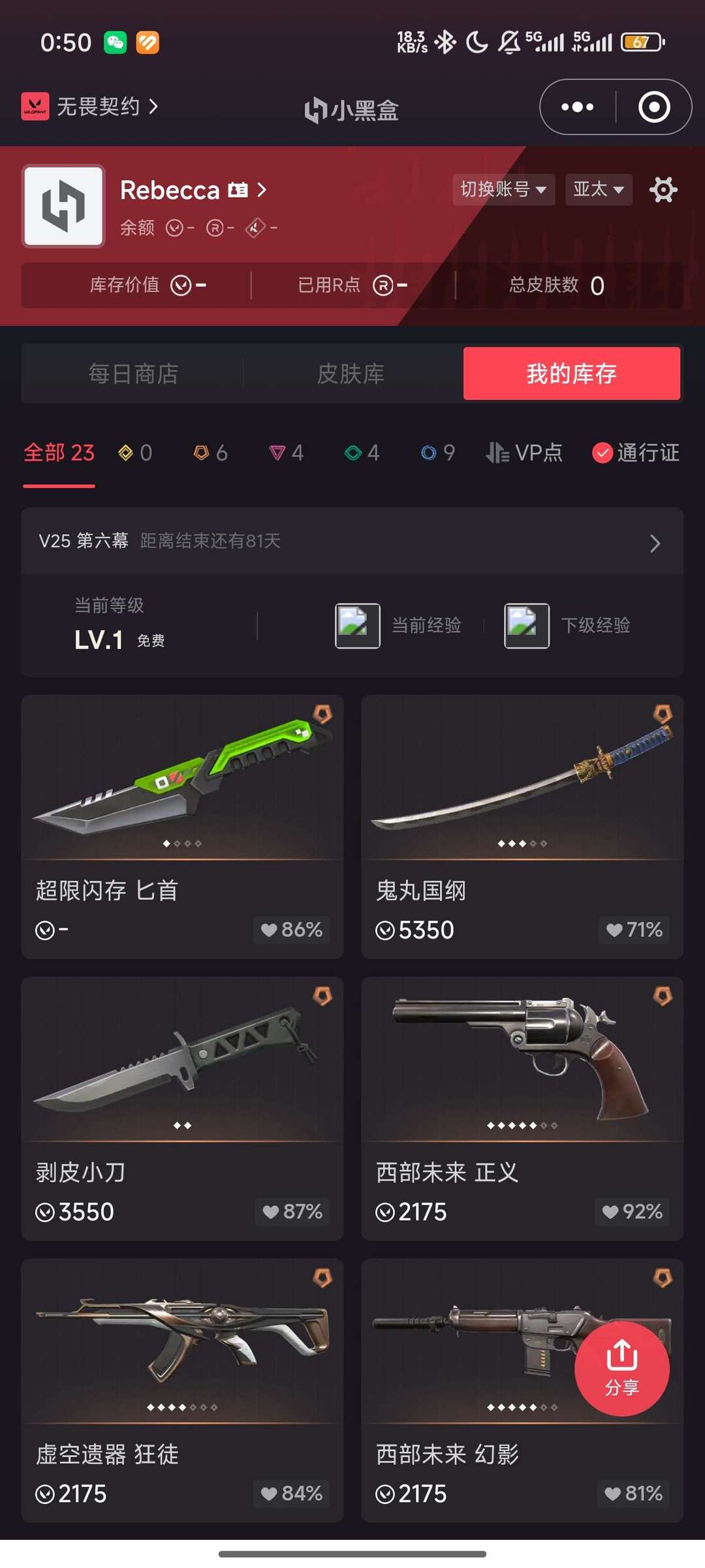 未定级,可排黄金上下分段ak:猴子,虚无,离子刀皮:剥皮小刀,太刀m4:边陲左轮边陲掠夺戍卫
